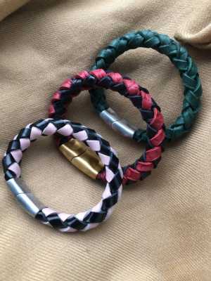 Браслет плетеный из натуральной кожи ручной работы. Цвет в ассортименте. Фурнитура - магнитная застежка никель, латунь.