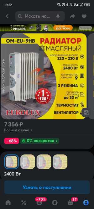Вид товара: Обогреватели;