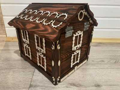 Продаю декоративный деревянный сундук, обожжен, покрашен и покрыт акриловым лаком. Размер 31*26, высота 29.