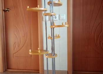 Подставка собрана на хромированых трубах д 16 мм. Полки покрыты лаком, водостойкие.